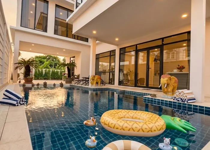 Пляжная Villa Chantara - Pattaya Central Private Pool & Luxury House 7Br с станцией зарядки для электромобилей располагается в районе Pattaya Walking Street, в 3 км от таких культурных достопримечательностей, как Музей плюшевых медведей. Вилла предлагает гостям патио и бильярдный стол, совсем недалеко от Торгового центра Outlet Mall.